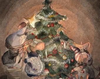 Christmas Party Mice Cross stitch pattern - pattern keeper - 250 by 250